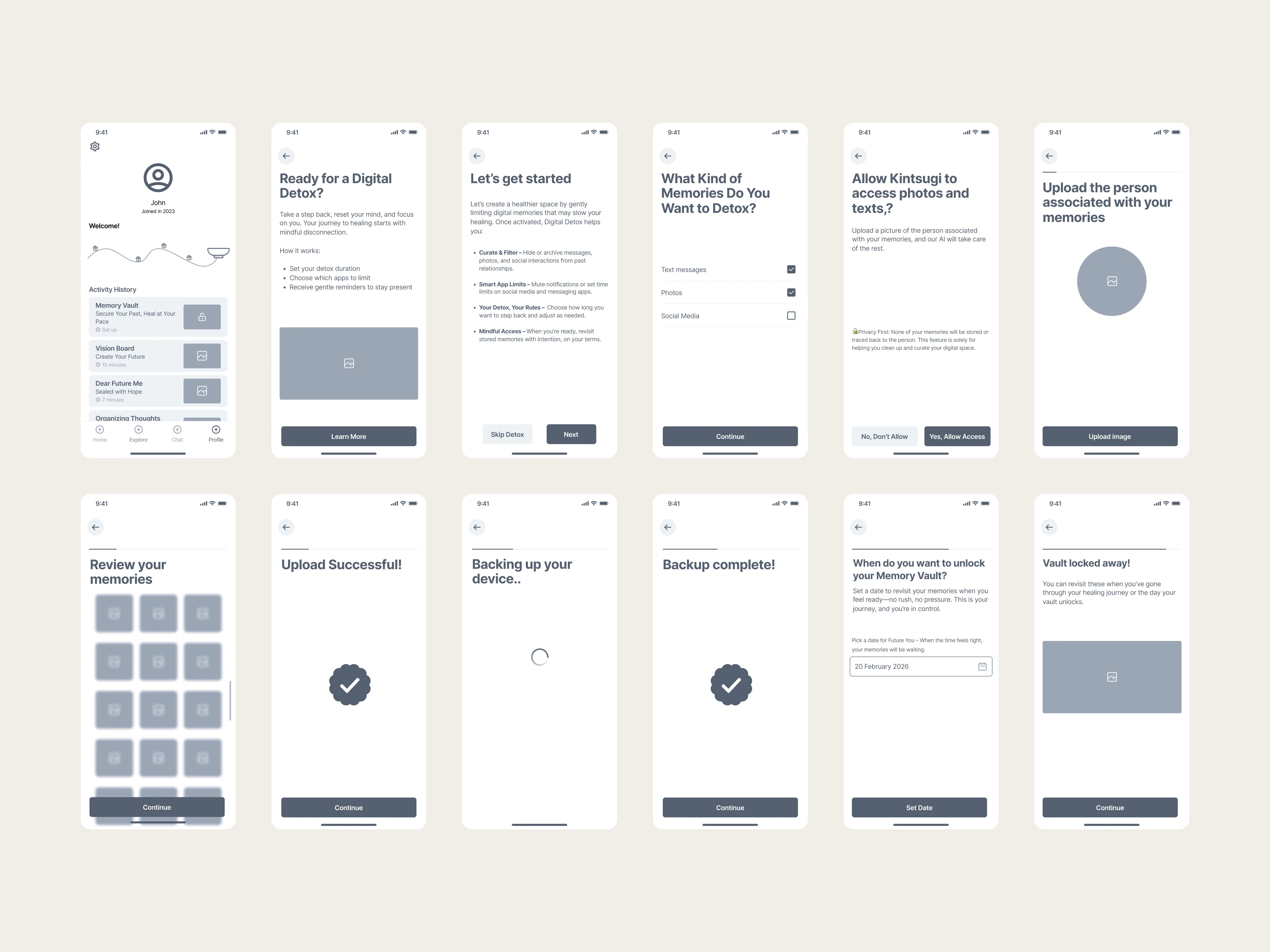 High-fidelity prototyping focused on refining tone, interaction clarity, and visual consistency. A symbolic Kintsugi animation reinforced the emotional metaphor of healing.