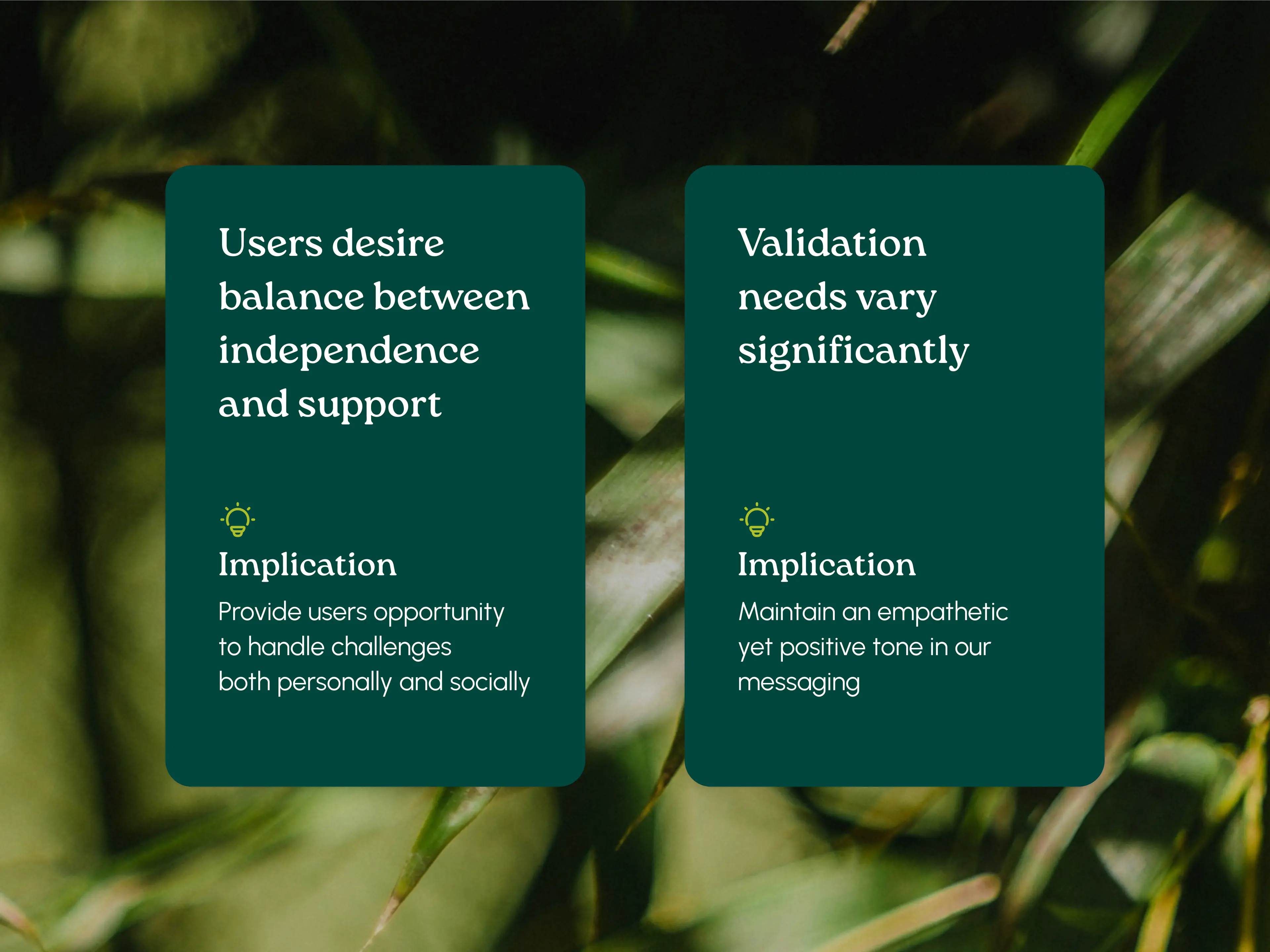 Validation needs vary significantly. Some wanted reassurance, while others found overt validation uncomfortable. This insight shaped a neutral, empathetic tone that avoids assumptions about emotional needs.
