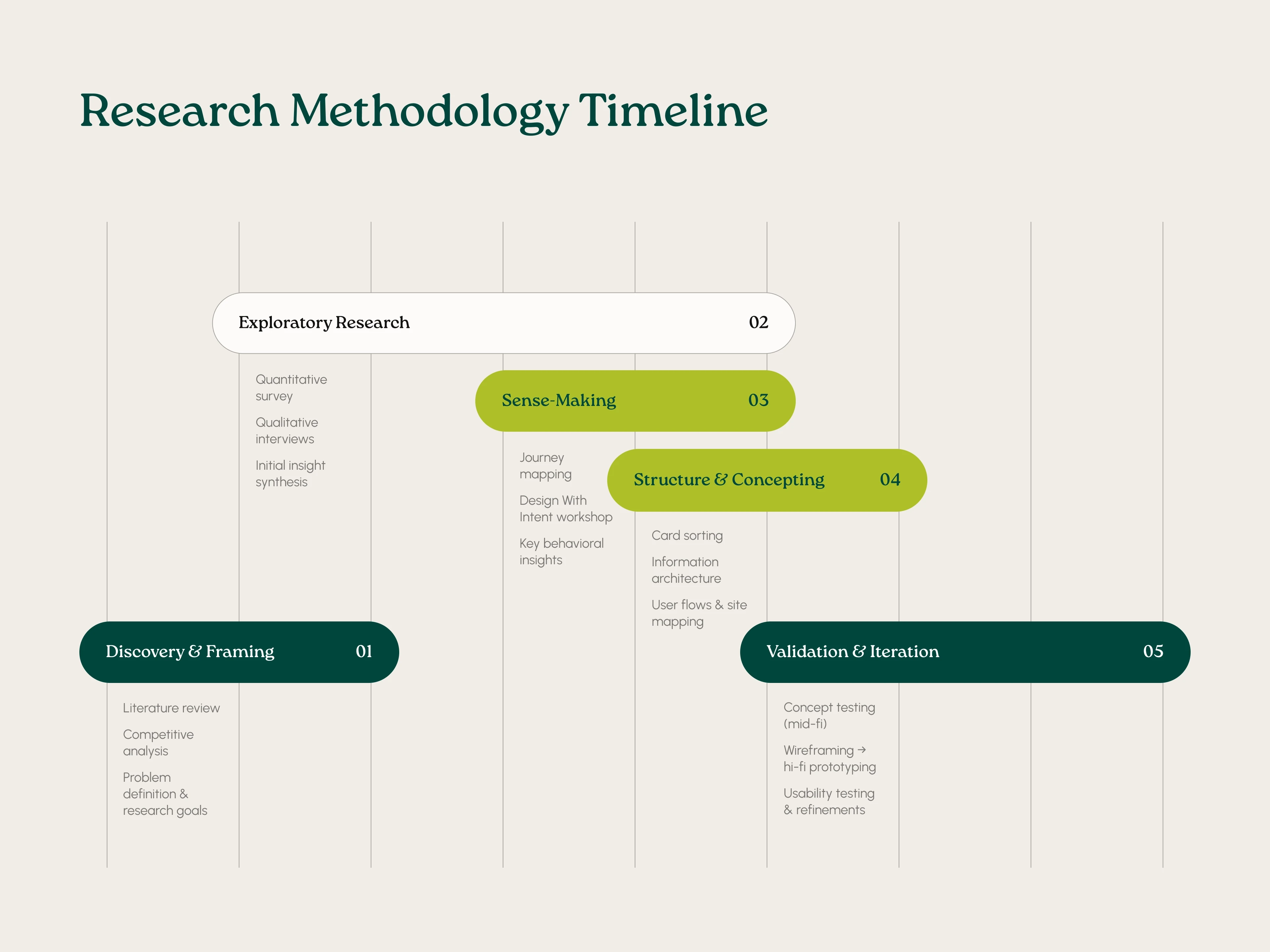 This framework helped us identify when users needed structure versus flexibility, guidance versus space, and reflection versus action. Rather than forcing linear progression, Kintsugi supports movement between phases at the user's own pace.
